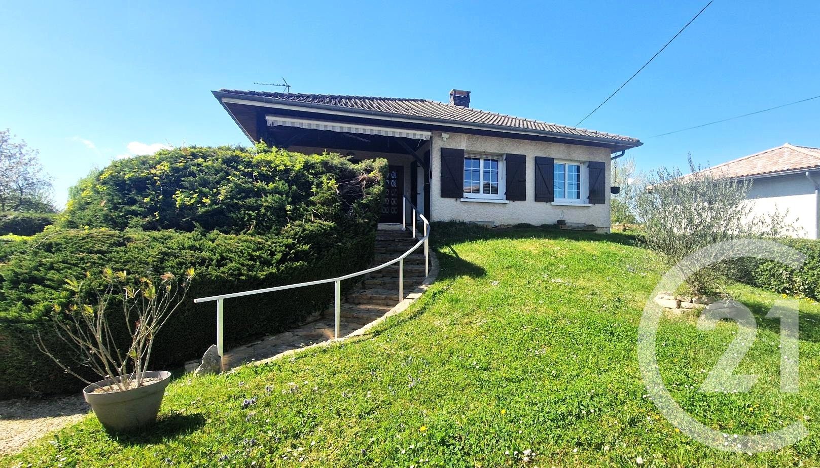 De bonne construction (maçonnerie et charpente traditionnelle) et édifiée sur un sous-sol complet, elle propose une organisation fonctionnelle avec, à l'étage, un hall d'entrée desservant un séjour-salon en L, chaleureux et lumineux, équipé d'une cheminée et de la climatisation. Cette pièce de vie s'ouvre de part et d'autre sur l'extérieur : une jolie terrasse couverte d'un côté, idéale pour les repas en toute saison, et un grand balcon de l'autre.